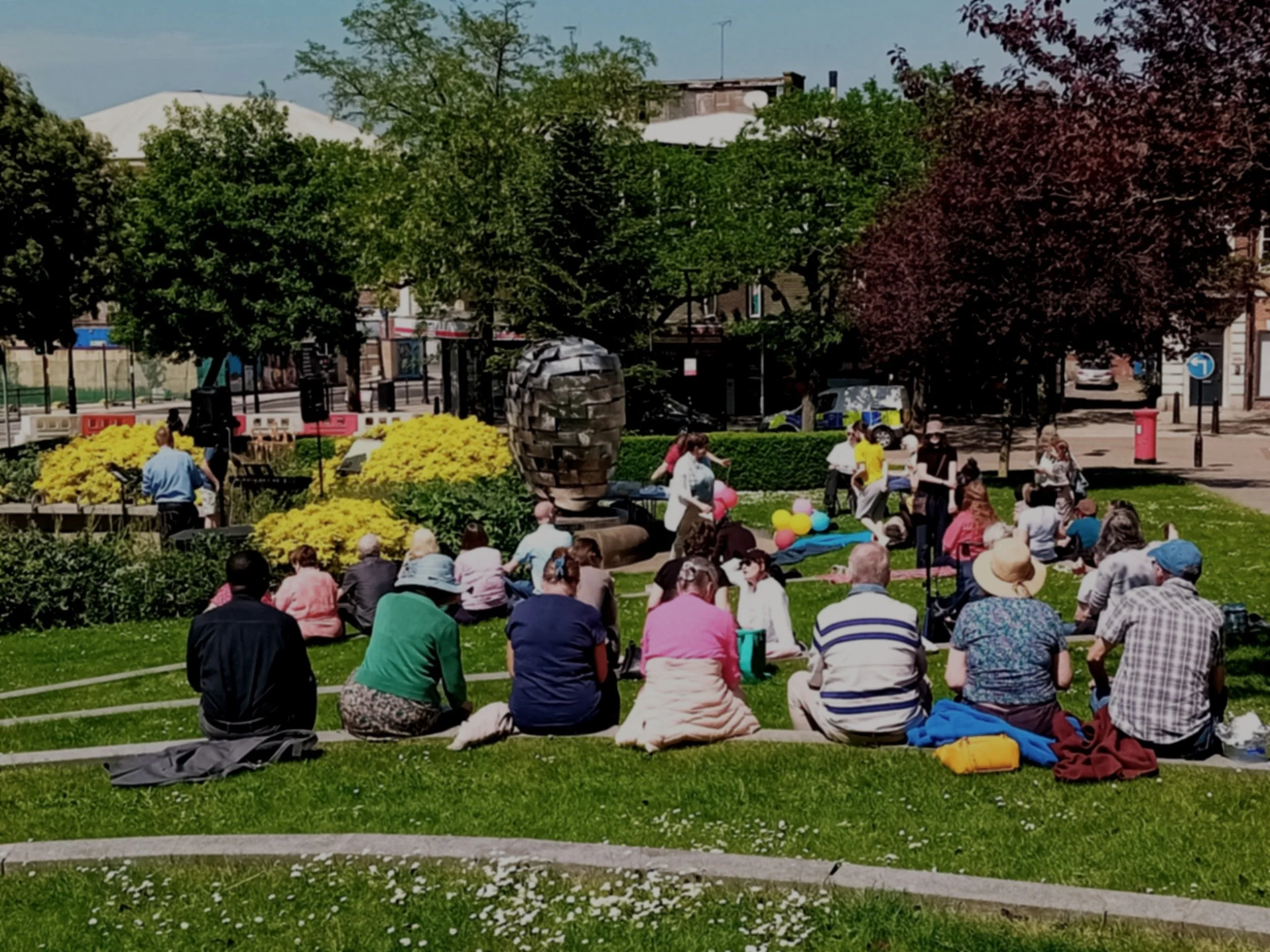 This event drew on the history of the Whit Walks, as many people walked from their churches.